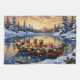 Bring cheerful, friendly charm to your holiday season with this heartwarming Golden Retriever Christmas design! This magical scene features three happy, beloved Golden Retrievers sitting contentedly in a cozy wooden boat, gently floating on a serene snowy lake at sunset. The boat is beautifully adorned with glowing Christmas string lights and fragrant pine garlands, while the dogs wear festive scarves. They are surrounded by colorful wrapped presents and cheerful holly branches. Soft snowflakes gently fall, and the shimmering reflection of the lights on the water creates a truly magical winter holiday atmosphere. This design is a perfect Christmas gift for any Golden Retriever owner, dog lover, or admirer of festive and devoted sporting dog art, capturing the serene joy of the season.