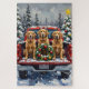 Bring happy, loving charm to your holiday season with this adorable Golden Retriever Christmas design! This festive scene features three friendly, golden-coated Golden Retrievers sitting contentedly in the back of a classic red pickup truck, nestled in a picturesque snowy winter forest. The vintage truck is adorned with a vibrant Christmas wreath, twinkling with red and gold ornaments and warm, glowing lights. Soft snowflakes gently fall, enhancing the winter wonderland effect. A decorated Christmas tree in the background completes this heartwarming picture, making it an ideal Christmas gift for any Golden Retriever owner, dog lover, or admirer of festive and beloved dog art. This design perfectly captures the joyful spirit of the holidays.