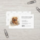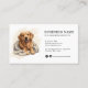 Showcase your pet care business in style with this adorable dog grooming service business card, featuring a friendly illustrated golden retriever wrapped in a cosy blanket. With space to include your business name, contact details, website, and social media handles, this card is perfect for groomers, pet salons, or mobile dog care services. The clean and modern layout makes your information easy to read, while the charming design adds a warm and professional touch that pet owners will remember. A great way to make a lasting impression with every wagging tail.