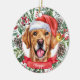 This sophisticated ceramic Christmas ornament features a watercolor of a beautiful adult Golden Retriever in a Santa hat, surrounded by holiday greenery, pinecones and berries, with a red banner with your pet's name (or change to Merry Christmas). You can fully personalise this design by changing the greeting and year on the back in an elegant font. This is a stylish, yet inexpensive, custom Christmas ornament, and it's perfect for retriever lovers, dog lovers, pet lovers, hunting dog lovers, and hunters.