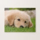 A Golden Retriever puppy resting and chilling in a meadow, such a cutie puppy-eyed Goldie with a pensive face. This animal photo puzzle game is an enchanting gift idea for dog lovers. A young dreaming doggy portrait photo taken by Katho Menden. http://www.zazzle.com/kathom_photo