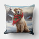 Golden Retriever Dog in Snow Christmas Cushion