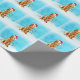 Golden Retriever Dog In Snow with Santa Hat Lights Wrapping Paper