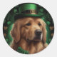 Golden Retriever Dog in St. Patrick's Day Classic Round Sticker