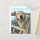 Let someone know you care with this cute postcard! Design features a photograph of a smiling golden retriever dog, who is standing on a wooden bench on a dock. Customisable text says, "Well, hello there! I've been thinking about you!"