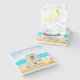 The coasters are gorgeous, a quality feel and heavy weight. They look like a precious archeological find. A rustic stone juxtaposed with a modern floral black and white print. I like the way the print goes slightly imperfect on the cut stone edges giving them a kind-of natural beauty.
