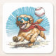 Golden Retriever Dog Playing Baseball Square Paper Coaster