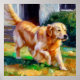 We all love our dogs. They a mankind's best friend. Show the world your passion with this portrait of a Golden Retriever playing in a yard.