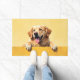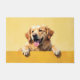 The soft sunshine yellow background adds a bright and cheerful touch, perfect for welcoming entryways. Designed with extra space at the top and bottom, it allows easy personalisation with names, welcome messages, or custom text—making it ideal for unique dog-themed doormats and thoughtful gifts.