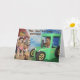 This card features golden retrievers as farmers. One is driving the tractor while the other rakes the hay. The text reads "Hay, Hay! It's your birthday!" and "Hope you have some fun!".