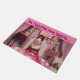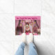 This door mat features a golden retriever as the Fortune Teller of Love. The Fortune Teller has a pink crystal ball, as well as tarot cards, crystals, and candles. The text reads, “We foresaw your arrival…”.