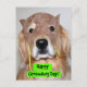 Will Punxsutawney Ti see his shadow this year? Legend has it that if the furry groundhog sees his shadow on Feb. 2, winter will last six more weeks. But if he doesn't see his shadow, spring will come early. This postcard features a photograph of a golden retriever dog who is wearing a groundhog mask. Text is fully customisable.