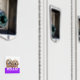 This magnet features a photograph of two smiling golden retriever dogs, with the word HELLO! on a purple background.