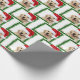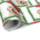 Cute golden retriever in snowflakes in green tinsel frame with snowflakes on white background.