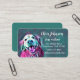 Make your dog walking profession stand out with these neon coloured business cards! Design features an art portrait of a smiling golden retriever dog, who is rendered in shades of hot pink and teal. Customise the text with all your personal information.
