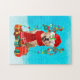 Golden Retriever in snow with Christmas gifts Jigsaw Puzzle