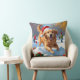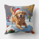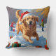 Golden Retriever in Snow with Christmas Hat Cushion