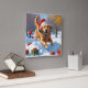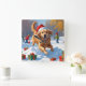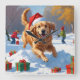 Golden Retriever in Snow with Christmas Hat Square Wall Clock