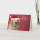 This golden retriever is on a dark red Christmas background of snowflakes ready to dole out all of your Christmas greetings.