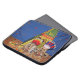 This laptop sleeve features golden retrievers dressed as Native Americans by a teepee.