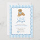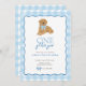 Celebrate your little one’s “one golden year” with this sweet puppy themed invitation! Featuring a playful golden retriever wearing a blue gingham bow and a matching blue gingham border, this design is perfect for a first birthday party. Easily customise the name, date, and party details right in your browser—no special software needed. A charming choice for dog lovers and darling birthday celebrations alike!