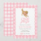 Celebrate your little one’s “one golden year” with this sweet puppy themed invitation! Featuring a playful golden retriever wearing a pink gingham bow and a matching pink gingham border, this design is perfect for a first birthday party. Easily customise the name, date, and party details right in your browser—no special software needed. A charming choice for dog lovers and darling birthday celebrations alike!