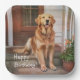 These birthday paper plates feature a Golden Retriever sitting on the front porch waiting for it’s master.
