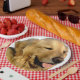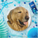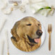 A beautiful golden retriever decorates these paper plates