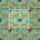 Cute cartoon style Golden Retriever with a scattering of bones and paw tracks. This design is intended to tile seamlessly.