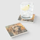 The coasters are gorgeous, a quality feel and heavy weight. They look like a precious archeological find. A rustic stone juxtaposed with a modern floral black and white print. I like the way the print goes slightly imperfect on the cut stone edges giving them a kind-of natural beauty.