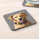 Golden Retriever Portrait Wearing Black Collar Coaster