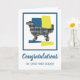 Golden Retrievers dog silhouette in yellow blue and black modern grid lines pattern. Congratulations on your new puppy outside and funny message inside can be changed to anything you want.