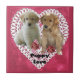 Two adorable Golden Retriever puppies are posing pretty on a lace covered pink heart. It's puppy love! Wonderful gift idea for the dog lover in your life. Great for Valentine's day, or any day of the year, as it's always time to show some love!