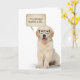 Cute golden retriever puppy wearing glasses on white with speech bubble for 56th birthday humour.