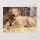Brighten someone's day with a handwritten note! This adorable canine postcard features an image of a happy Golden Retriever puppy dog sitting in the hay. She is ready to help you send smiles to friends and family.