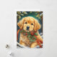 Holiday card featuring a cute golden retriever puppy, dressed up in festive holly and ribbons. "Merry Christmas and a Happy New Year" greeting on back is customisable. Great card for dog lovers! Visit my shop for more golden retriever and dog art.