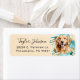 These awesome return address labels featuring your name in a modern script font and your address in a clean sans serif font paired with an adorable watercolor image of a golden retriever on a watercolor background would be perfect for all your mailing needs!