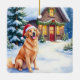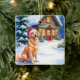 Golden Retriever Rustic Cabin Santa Hat Christmas Ceramic Ornament