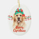 Golden Retriever Santa Hat Holiday String Beads Ceramic Ornament