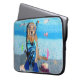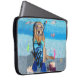 This laptop sleeve features a golden retriever dressed as a snorkeler in the ocean.
