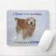This mousepad features a photograph of a smiling golden retriever dog who is standing in the snow, along with the quote, "If kisses were snowflakes, I'd send you a blizzard."