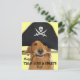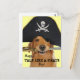 This postcard features a photograph of a golden retriever dog who is dressed up for International Talk Like a Pirate Day, which is every September 19th! He's wearing a pirate's hat and black eye patch, while holding a gold sword in his mouth. Text on back reads, "Avast me hearties!" but this can be changed or deleted.