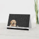 Cute Golden Retriever on black and white polka dot pattern with thank you text for pet sitting.