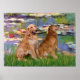Water Lilies by Impressionist Claude Monet (1914), adapted to include two Golden Retrievers. One of many water lily paintings, this one has red or bright pink lilies in the pond. It sold at auction in 2008 for over 70 million.