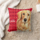 Watercolor illustration of Golden Retriever dog on red, black and gold harlequin diamond pattern background. Personalise with name or special message
