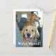 These change of address postcards feature a photograph of two golden retriever dogs who are riding in a car, en route to their new home. Personalise with your custom details!