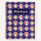 This is a whimsical notebook for any dog lover. It features a polka dot pattern of pink and purple circles with golden diamonds in between against a dark blue background. At the centre of each polka dot is either a smiley, adorable golden retriever or a whimsical sun. There is a spot of the front that says, "Notebook," but you have the option to change the text if you like. Don't forget that the entire notebook is customisable, so be sure to pick from a soft or hard cover, pick your interior page design, and pick the colour of your spiral. All elements of this pattern, I have hand-drawn.