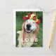 Tell someone how you feel about them with this cute postcard! Design features a photograph of a smiling golden retriever dog who is wearing a yellow and red crown of flowers with trailing ribbons. Text on front reads, "Love" and "Happy Valentine's Day," while customizable back text says, "Always and forever."