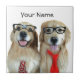 Everyone loves a nerd, don't they? This design features a photograph of two golden retriever dogs wearing black nerd glasses. One pair is even held together with silver duct tape!
