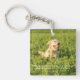 Key chain with an image of a Golden Retriever retrieving a tennis ball from the fields with an inspirational quote: "Until one has loved an animal, a part of one's soul remains unawakened." — Anatole France written below.